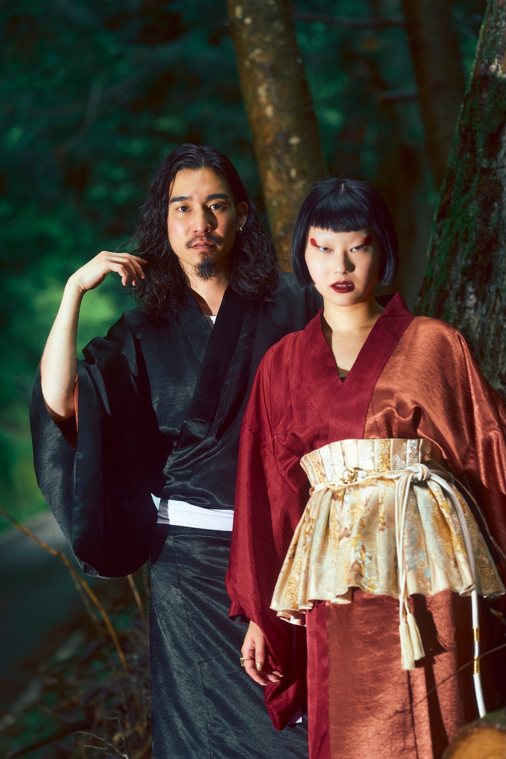 特許取得の「コール仕立て」により、誰でも約1分で着られる着崩れしにくい着物です。着物の両襟先には帯の代わりとなる紐がついており、その紐を背中にある”穴”から通すことで簡単に着用できます。また、紐が着物に固定されているため、大きく動いても着崩れる心配はありません。詳細は商品ページ下部の動画でご確認いただけます。